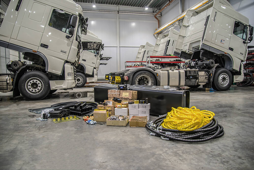 В комплект входит все: бак, насос, гидрораспределитель, вся необходимая фурнитура и масло — чтобы ваша машина сразу пошла в рейс после выхода из сервиса и выполняла поставленные задачи.